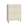 Вместительная и стильная модель идеально подходит для небольшой прихожей. Рамочные фасады с фрезеровкой украшены изящными золотистыми ручками в тон высоких опор. Такой дизайн придает обстановке особые шарм и элегантность.