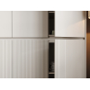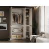 Внутреннее наполнение представлено штангой для плечиков и удобными полками разных размеров, что позволяет распределить одежду по категориям, а также разместить коробки и чемоданы. Стильная волнообразная фрезеровка и лаконичный дизайн без выступающих ручек подчеркивает современный облик модели.
